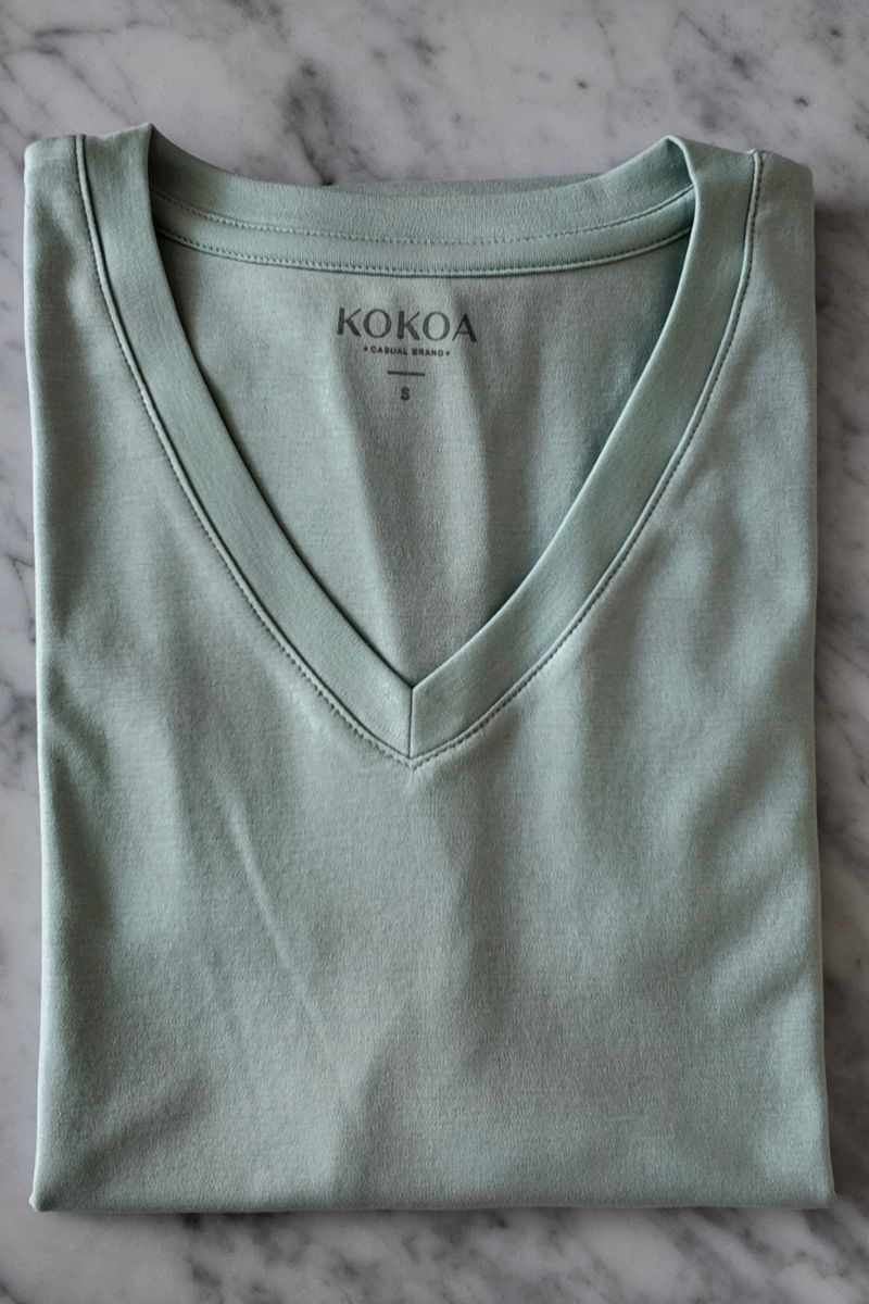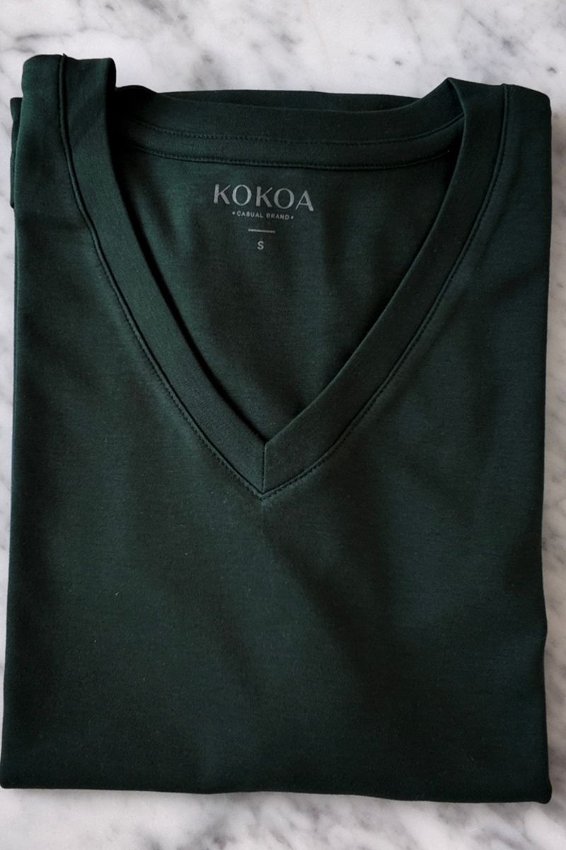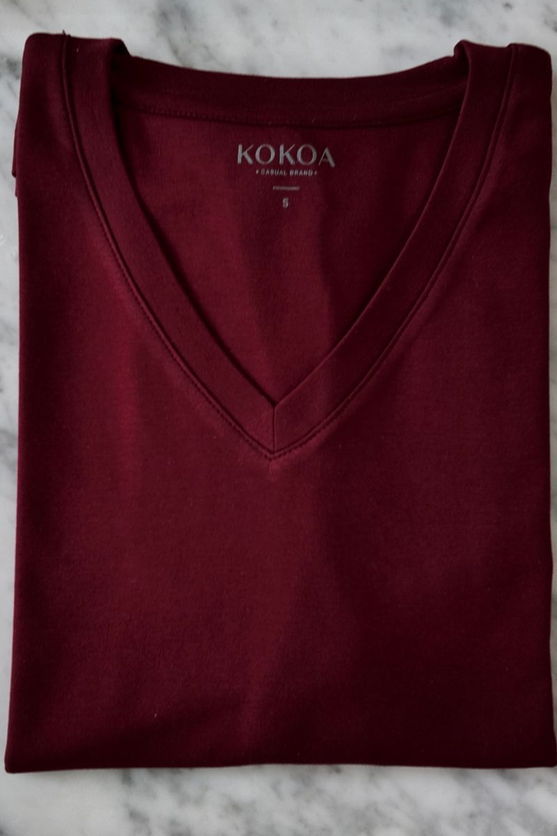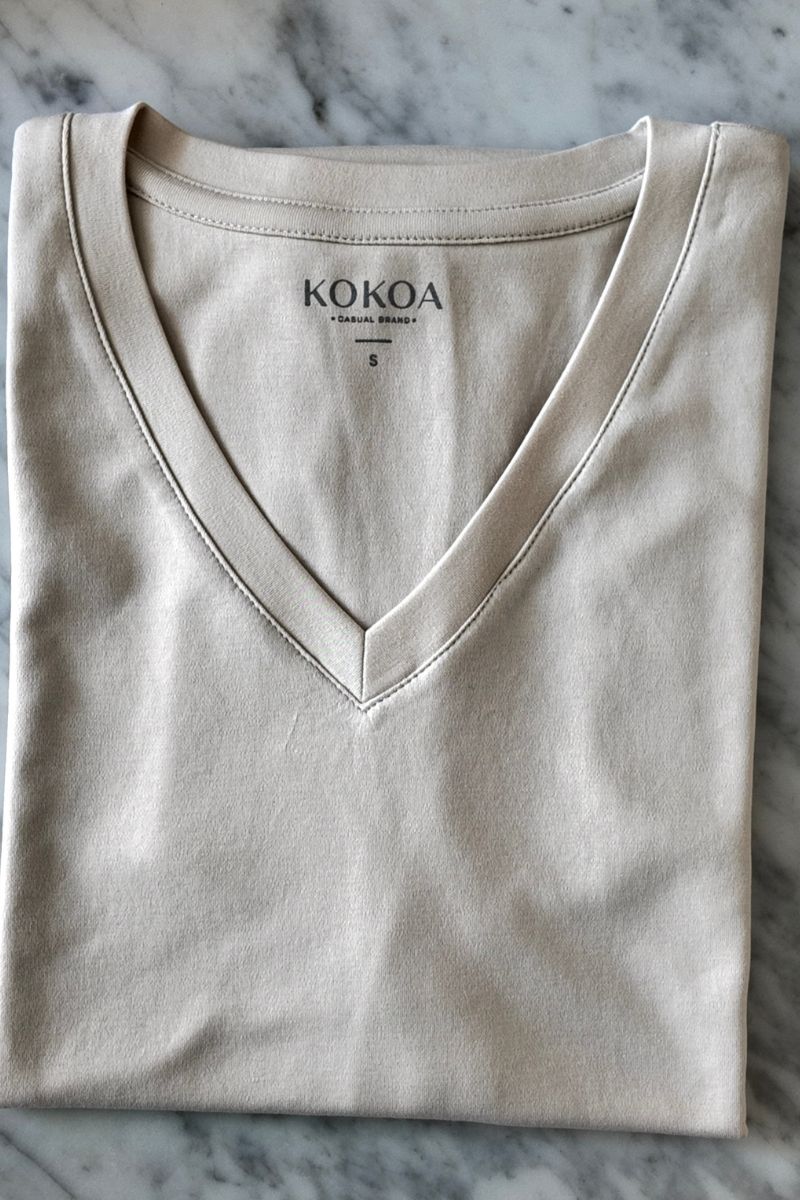 • Fit holgado, cuello V y mangas con doblez.